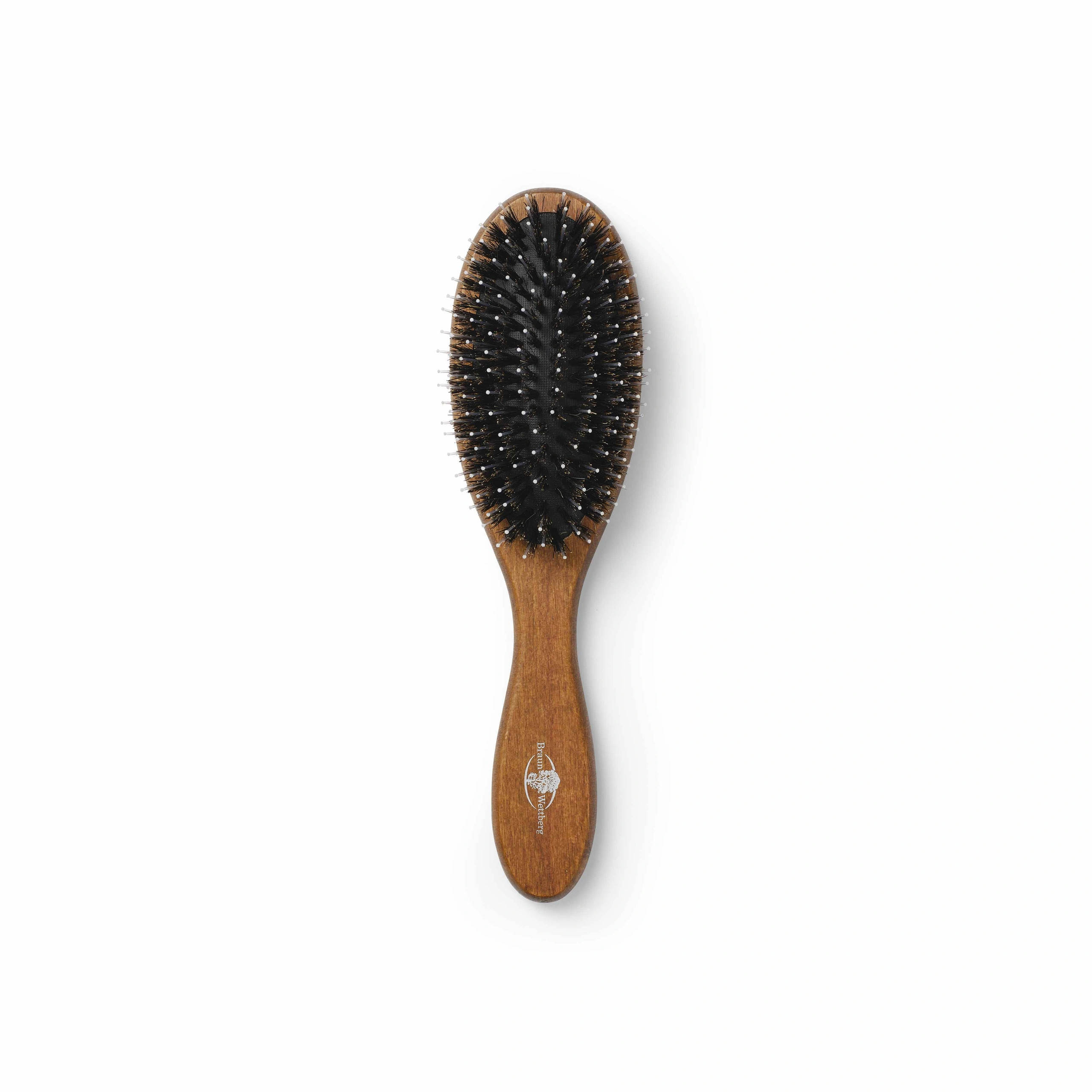 Classic cushion brush made of FSC-certified beech wood. Natural bristles and nylon pins with ball tips.