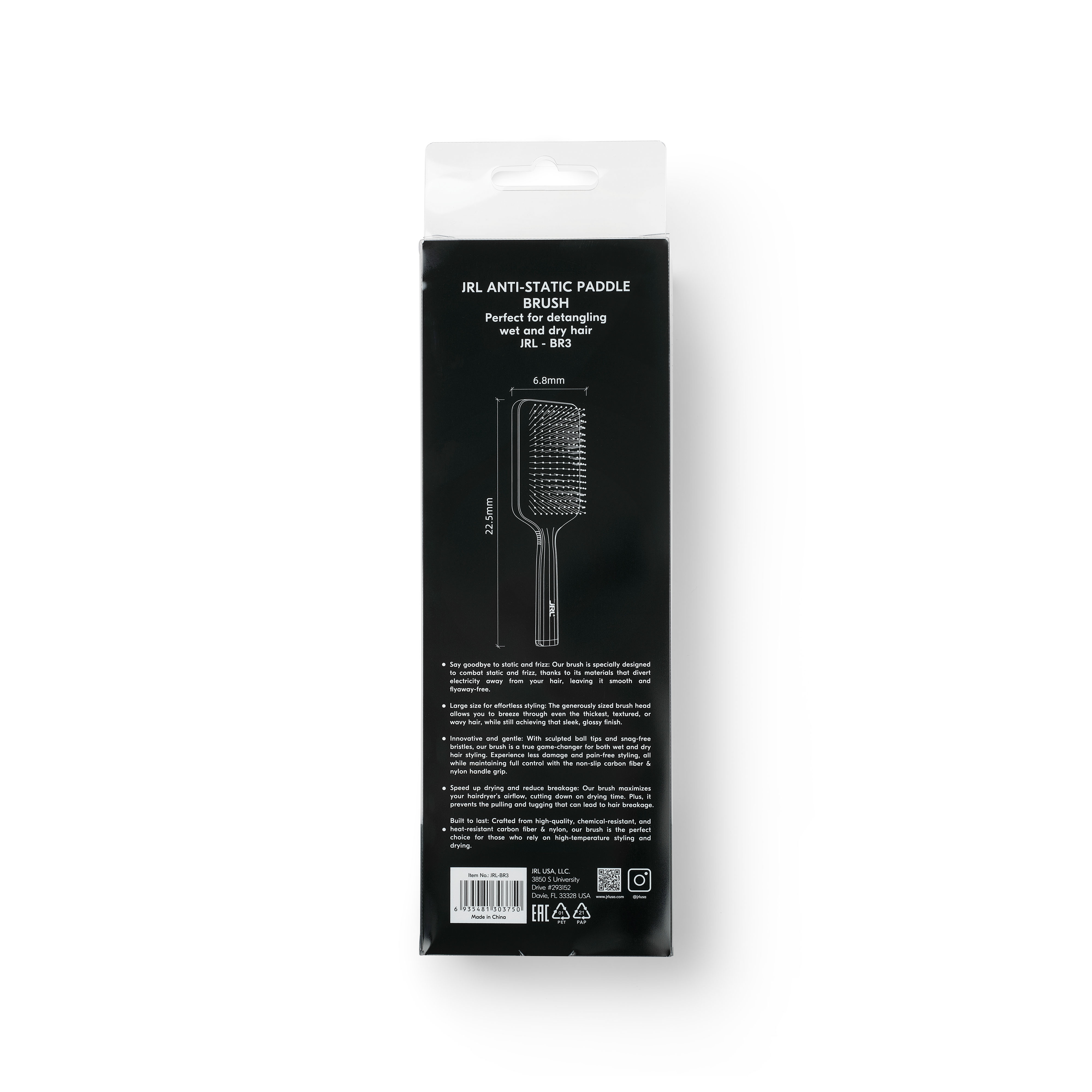 JRL’s antistatic paddle brush is the perfect choice for those who works with high-temperature styling and drying.