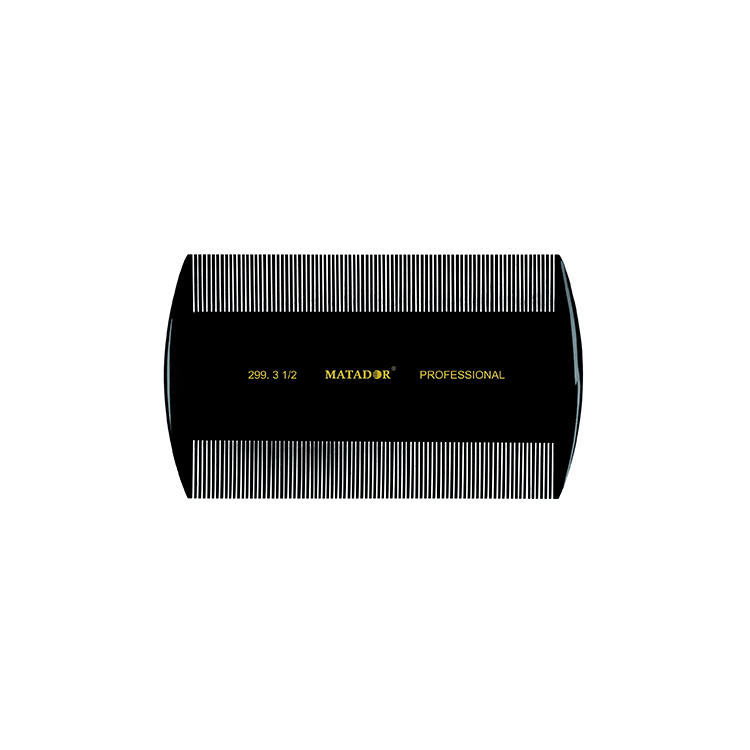 A high-end line of combs from New-York Hamburger, one of the world leading comb manufacturers. They are made from vulcanized natural rubber (ebonite) and go through a staggering 24 steps in production from a solid block of rubber to a finished comb. Matador combs with their cone-shaped, finely polished and rounded pins glide softly through the hair, no tangling or knotting, no damage to hair. Like in the past, the comb pins are formed in an elaborative, largely manual process through sawing with diamond cutters. The material is also very resistant to heat, discoloration and acids.