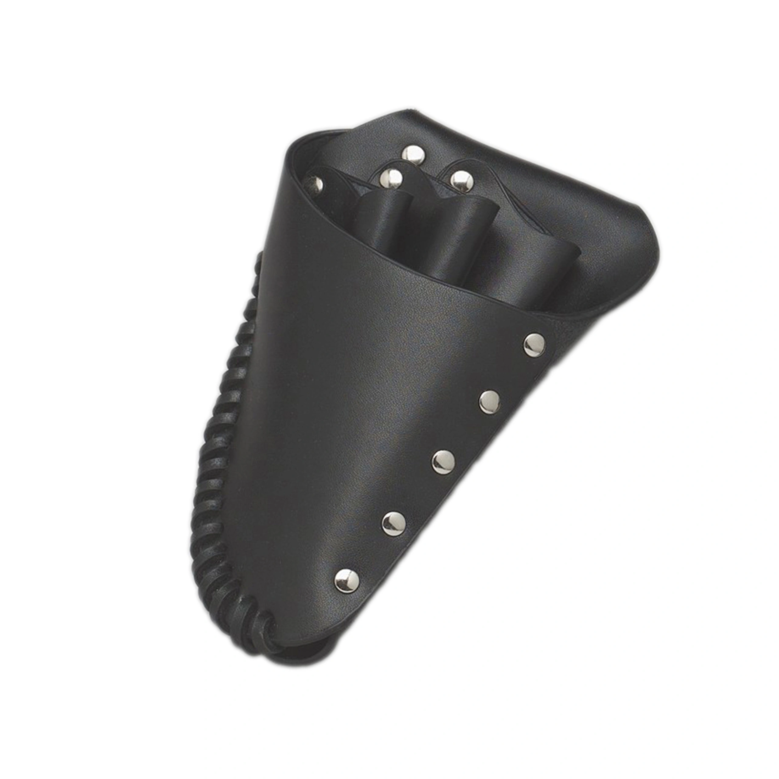 This scissor holster features a "Wild West Look" in sturdy, but elegant, black 100% quality leather. Equipped with a three scissor slots inside the pocket. The holster comes with a sturdy leather belt and silver-look details for waist or shoulder use. As your liking you can convert this holster to a belt pouch.