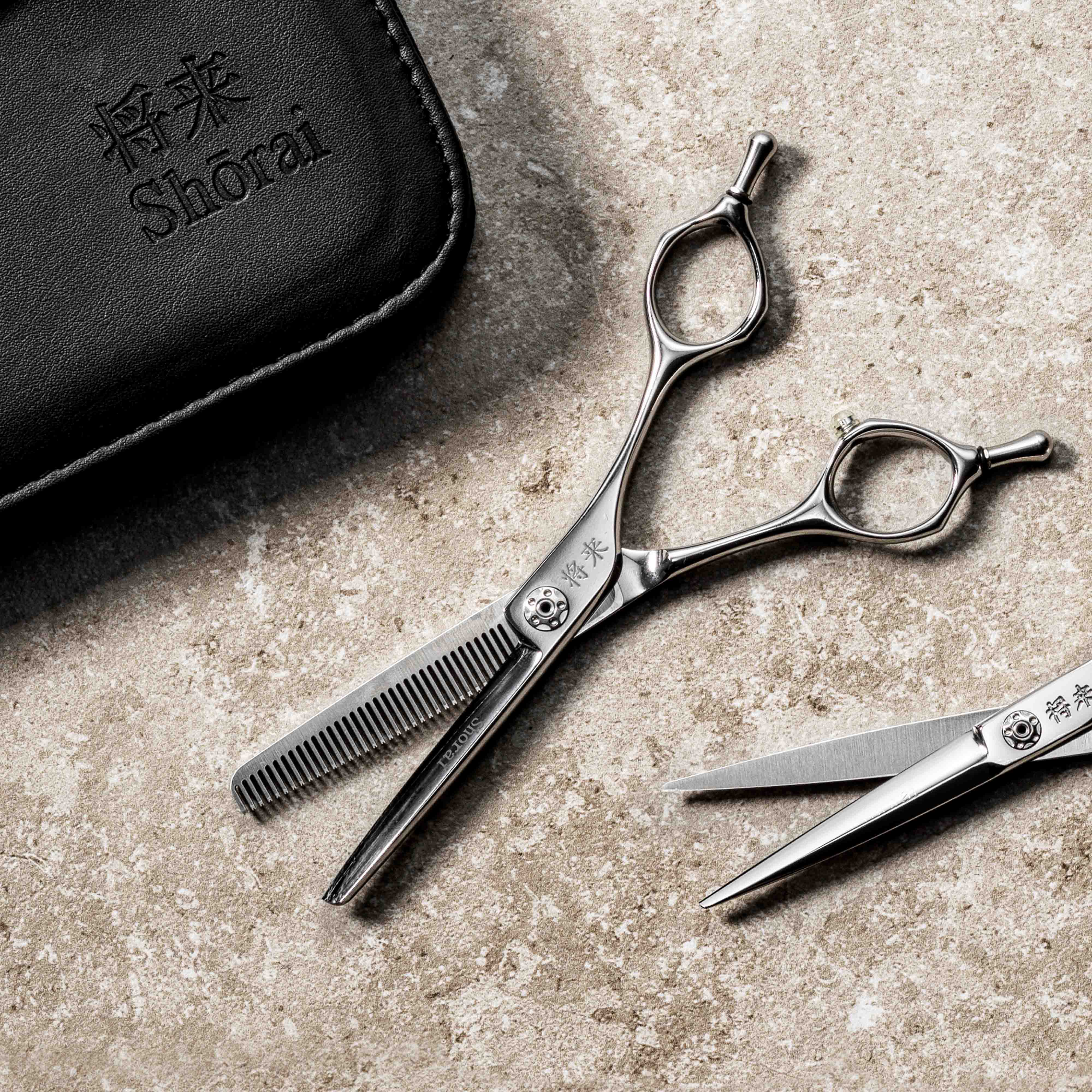 Thinning scissor from Shōrai. Shōrai is a handmade scissor collection made of japanese steel.