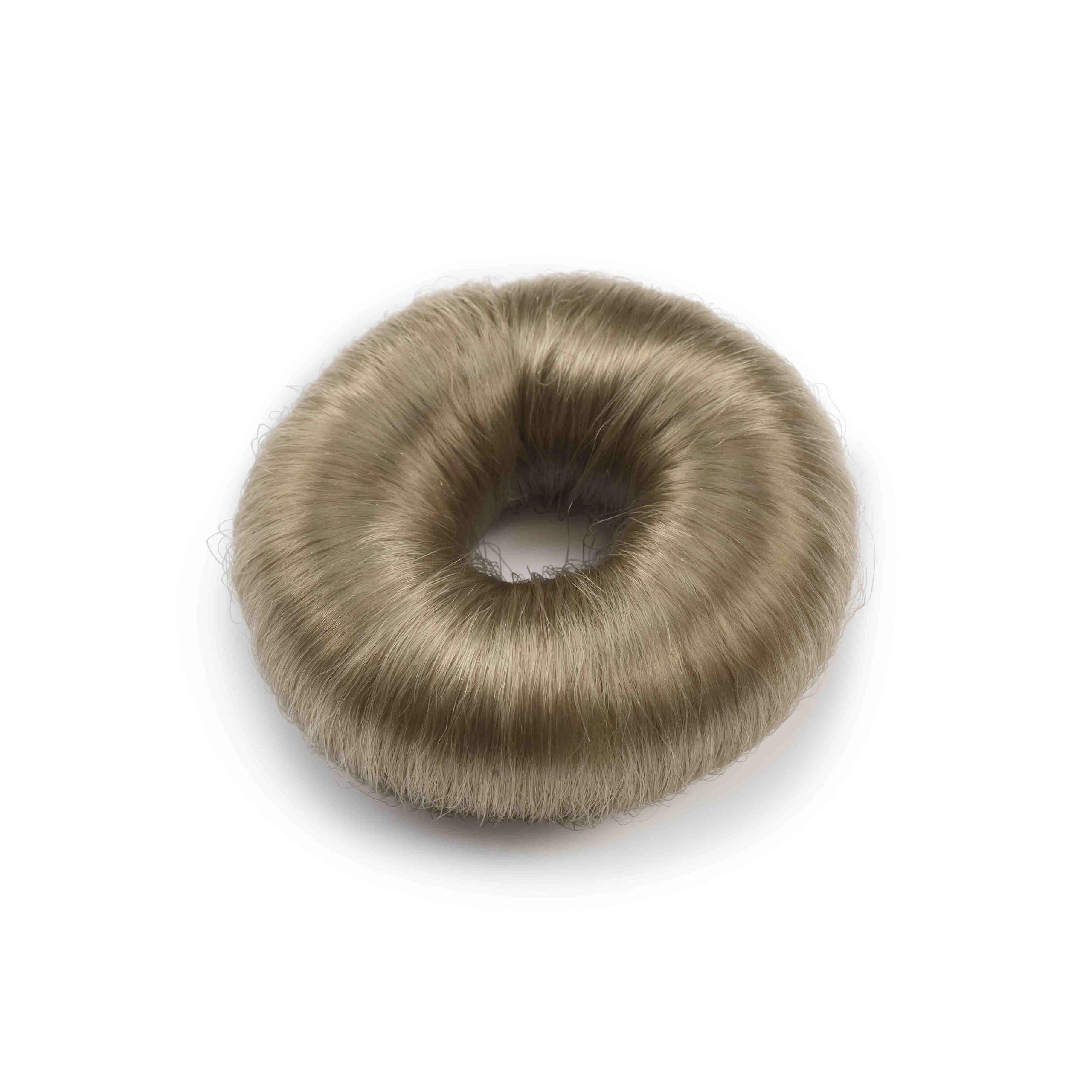 Blond synthetic hair bun Small, Ø 73mm. Available in three different colours and two sizes.