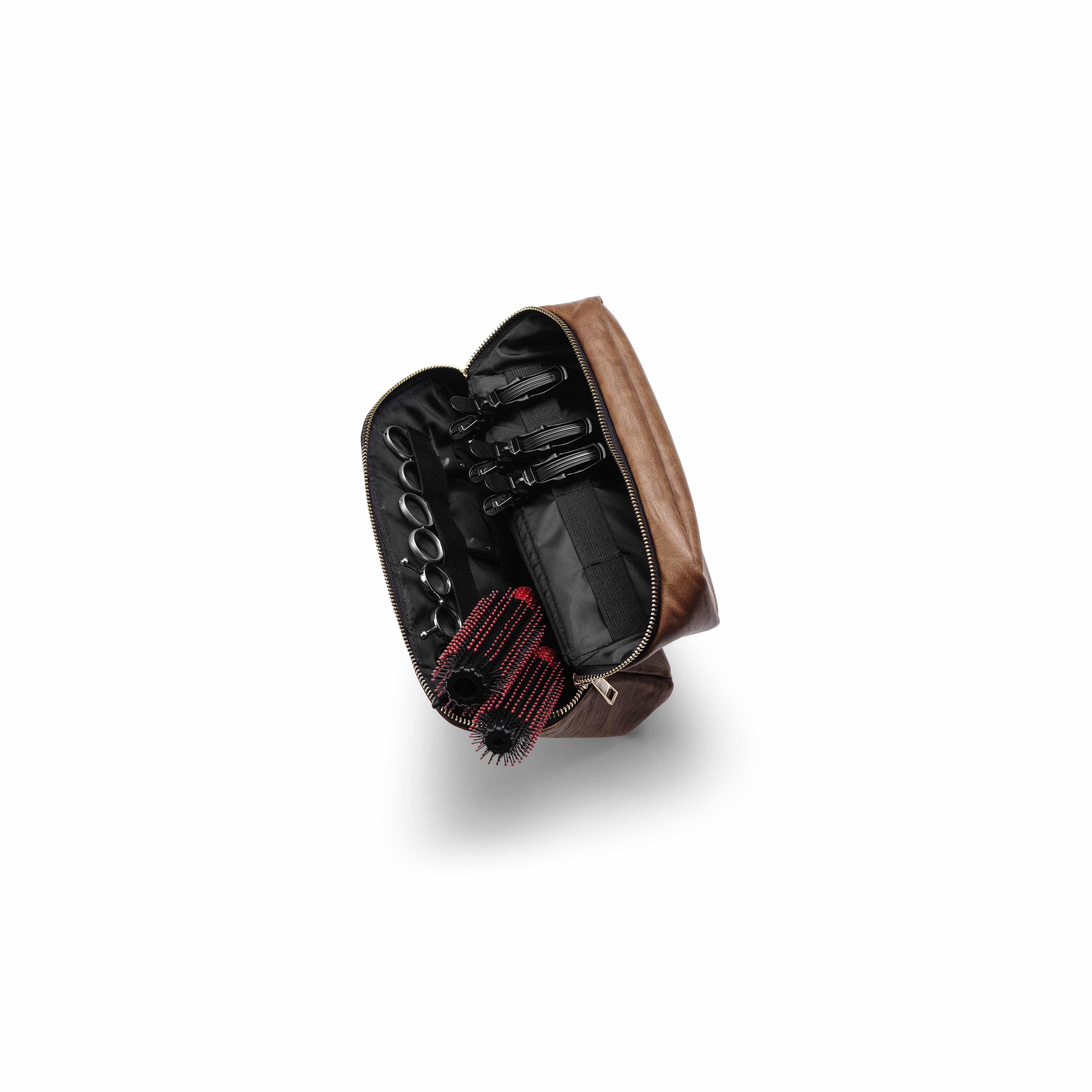 Make your work easier everyday with its mini size but large internal storage. A simple, multifunctional tool case. It has four elastic bands that can hold scissors, brushes or combs. Elastic strips that keeps clips in place while using them.