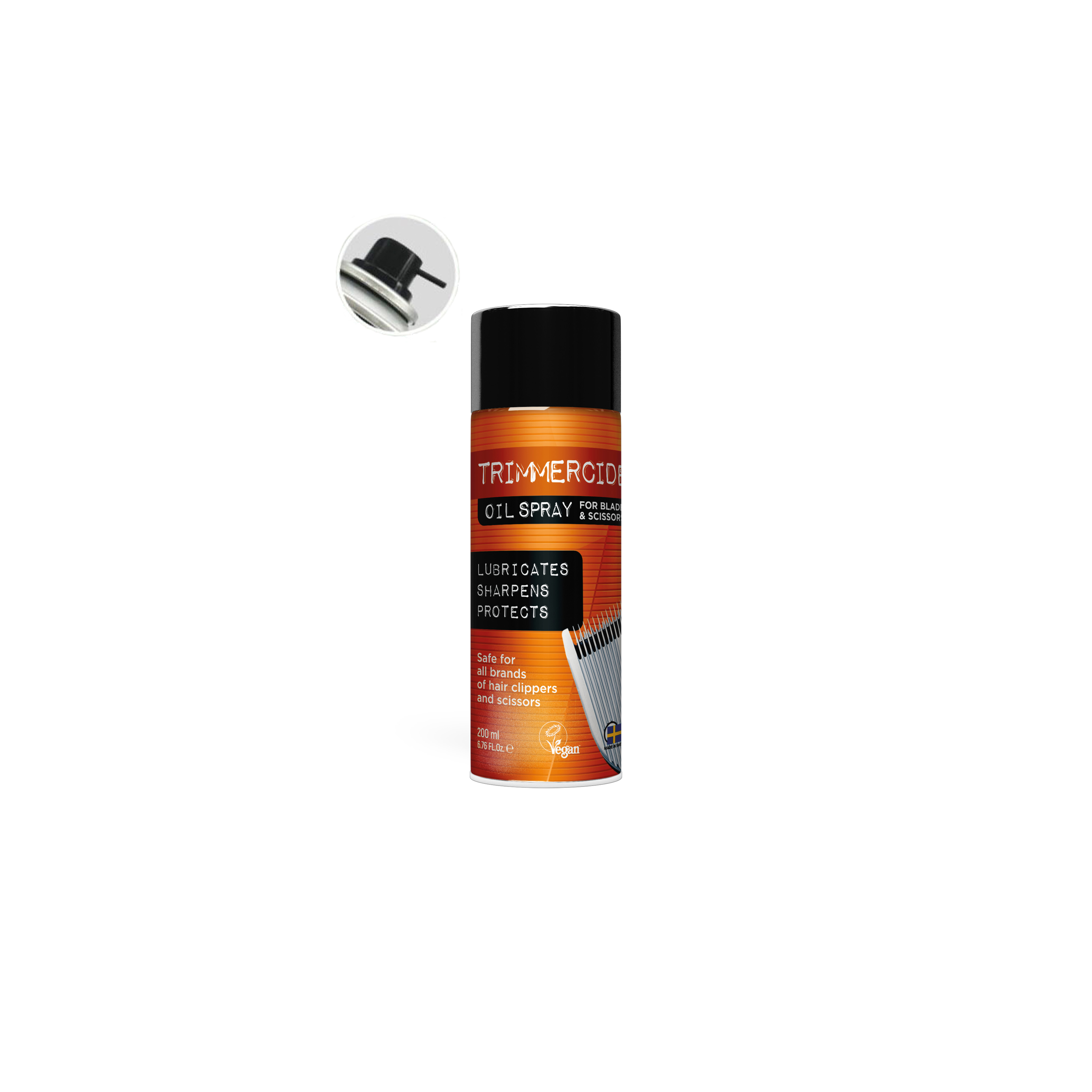 Trimmercide Oil Spray is a specially formulated oil made to keep clipper blades clean and lubricated. Apply regularly to teeth and bearing surfaces of blades to help maximize clipper performance and ensure longer blade life.